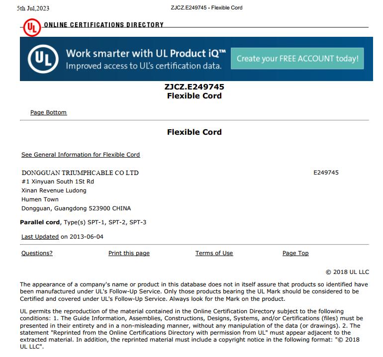 DONGGUAN TRIUMPHCABLE CO LTD (E249745) |