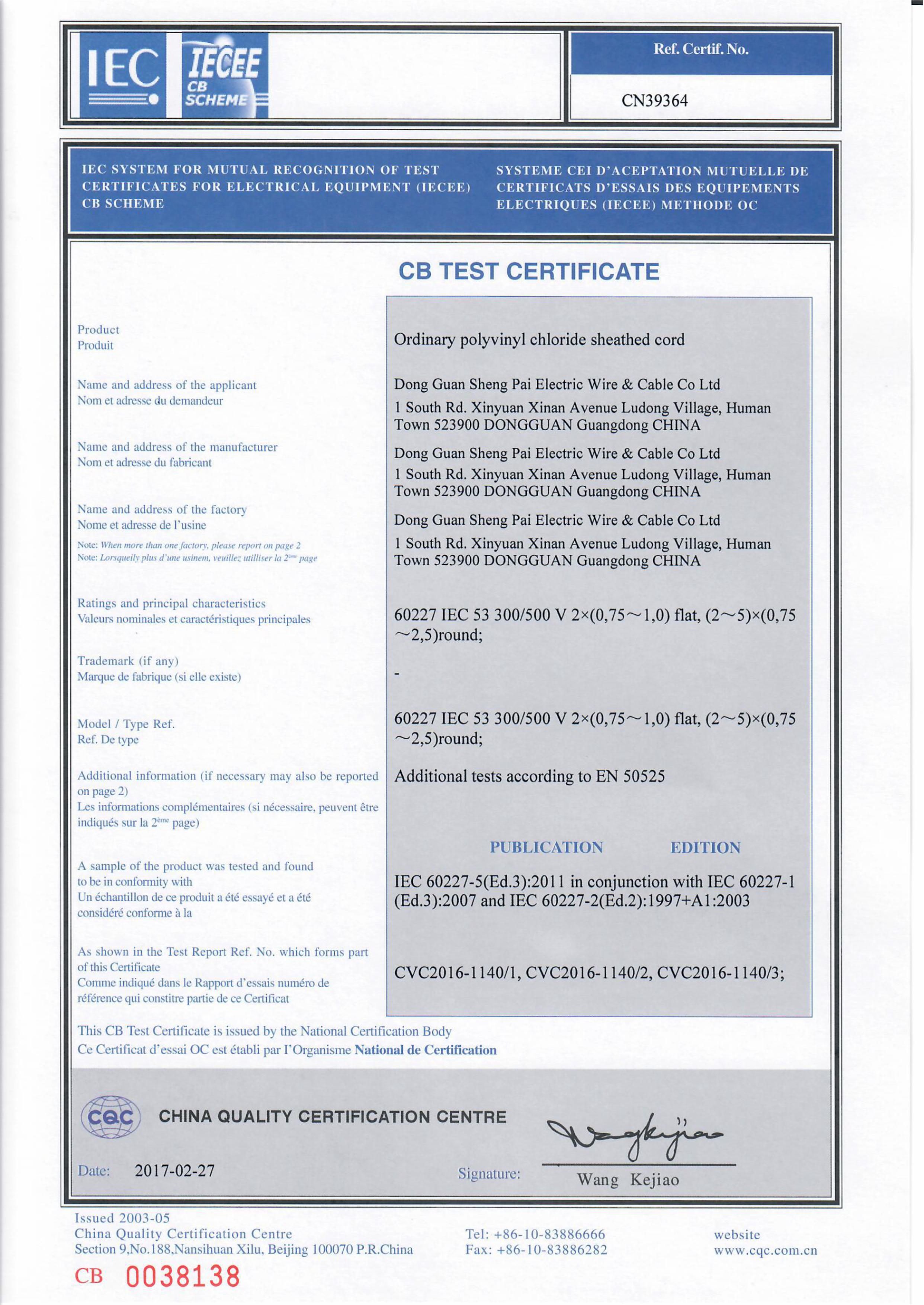CB TEST CERTIFICATE